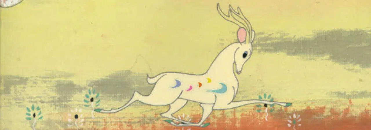 «Дев'ятиколірний олень» переносить нас у світ давньокитайських легенд, де навіть звичайна подорож може стати початком чогось незвичного. Загублений у буревії перський купець натрапляє на містичну істоту — оленя, чиє хутро переливається дев’ятьма яскравими барвами. Цей дивовижний олень рятує йому життя, а згодом витягує ще й іншого чоловіка з річкової безодні. Вдячний врятований обіцяє не розкрити місцеперебування диво-оленя.