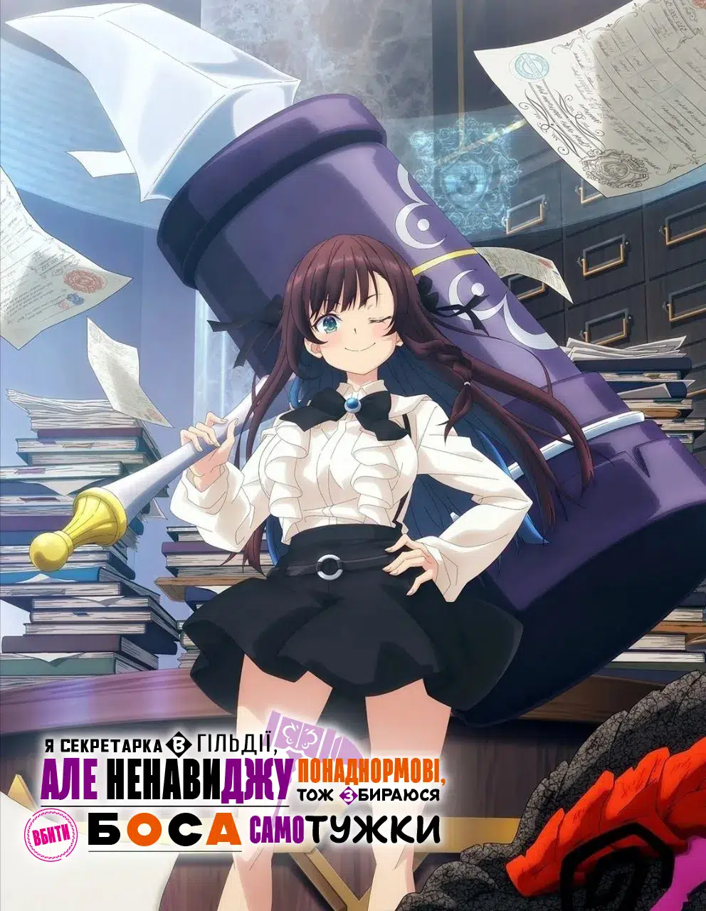 Аліна Кловер завжди мріяла про спокійне та стабільне життя, тому й обрала роботу секретарки у гільдії шукачів пригод. Вона була впевнена, що зможе уникнути ризиків, властивих квестам у підземеллях, і насолоджуватиметься затишним офісом з усталеним графіком. Однак буденність швидко перетворилася на нескінченний потік звітів та документів — усе через те, що шукачі пригод надто довго упорядковують підземелля, і гора невиконаних справ виростає, немов левел фінальний бос.