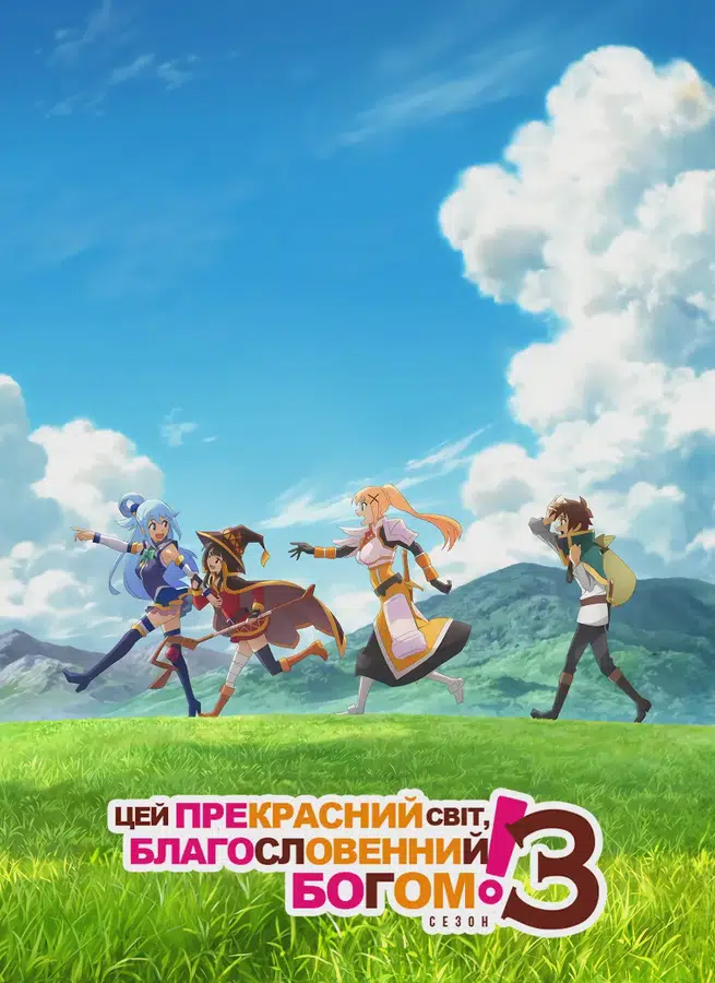 Після повернення з пригод у селі Кармінових Магів, Казума Сато нарешті знову опиняється вдома. Поруч із ним — його неймовірна, але зовсім неідеальна команда: самозакохана богиня Аква, вибухова чарівниця Мегумін, що володіє лише одною потужною атакою, і лицарка Даркнесс, яка отримує задоволення від труднощів. Незважаючи на гучні битви та маленькі перемоги, їхня мрія перемогти Короля демонів здається далекою — адже незграбність, безкінечні борги та дивакуваті рішення весь час ставлять друзів у безглузді ситуації. Від усього цього клопоту їх ненадовго відволікає витончене запрошення від принцеси, яка бажає почути історії про геройство Казуми та його супутниць. Даркнесс намагається відмовити групу брати участь у цій авантюрі, але це лише розпалює їхній азарт. Незабаром вони знову потрапляють у вир подій, де кожна нова пригода обіцяє ставити на випробування як їхню удачу, так і дружбу.